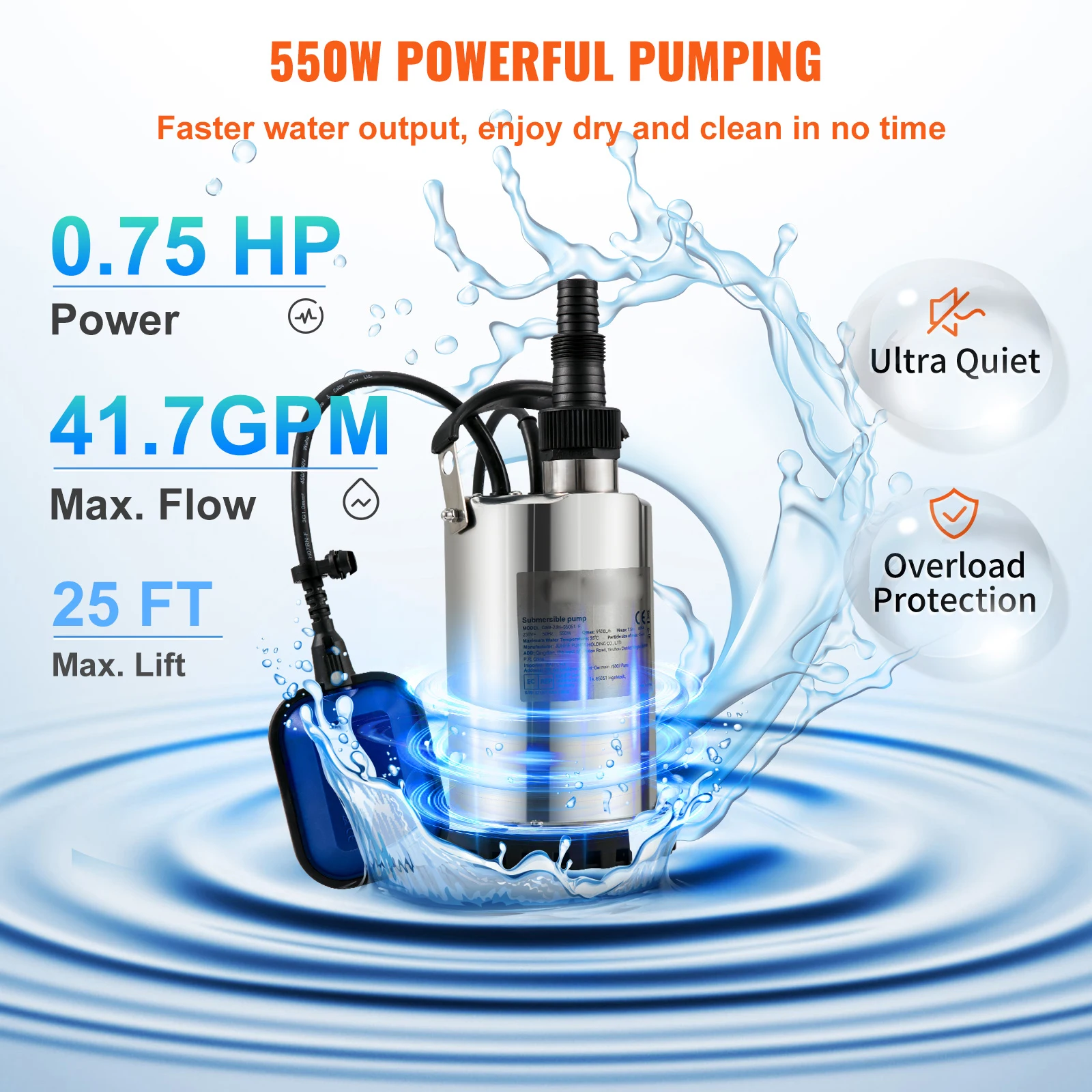 SucceBuy Submersible Sump Pump 550W-2200W